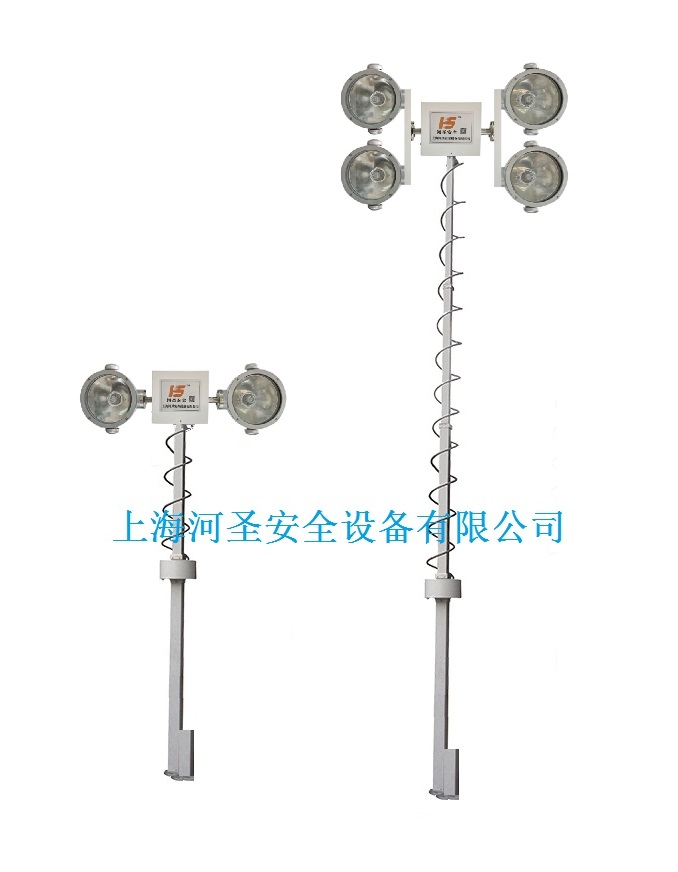 電動車載升降照明燈采用電動式升降桅桿,將燈具連接云臺舉升到7.5M的高度,增加照明的范圍;